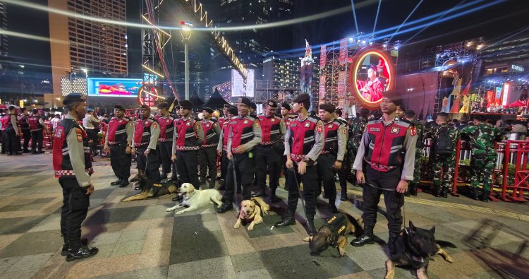 Jakarta — Korps Sabhara mengerahkan satuan K-9 untuk memperkuat pengamanan malam pergantian Tahun Baru di kawasan Bundaran Hotel Indonesia, Rabu (31/12/2025) malam. Pengamanan dilakukan guna memastikan situasi tetap aman dan kondusif di tengah tingginya aktivitas masyarakat.