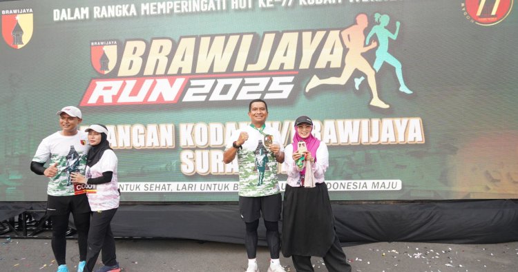 Surabaya – Komandan Korem (Danrem) 084/Bhaskara Jaya, Brigjen TNI Danny Alkadrie, bersama jajaran Korem 084/Bhaskara Jaya, turut serta memeriahkan Brawijaya Run 2025 yang digelar di Lapangan Kodam V/Brawijaya, Surabaya, Minggu (14/12/2025). Event ini diselenggarakan dalam rangka memperingati Hari Ulang Tahun (HUT) ke-77 Kodam V/Brawijaya.
