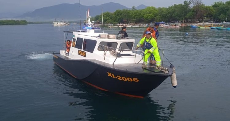Personel Sat Polairud Polres Jembrana bersama Brimob Batalyon C Pelopor, Basarnas, TNI AL, dan petugas pelabuhan dari UPP Kelas II Gilimanuk bergerak menuju lokasi menggunakan Rubber Boat dan kapal patroli KP Tanjung Rening 2006 milik Sat Polairud Polres Jembrana.