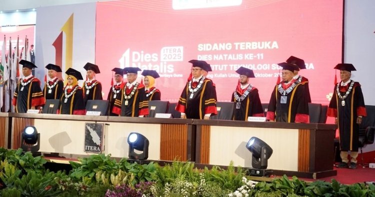 LAMPUNG - Institut Teknologi Sumatera (ITERA) merayakan tonggak sejarah penting dalam perjalanan akademisnya dengan menggelar Sidang Terbuka Dies Natalis ke-11 pada Senin, 6 Oktober 2025, di Aula Gedung Kuliah Umum 2 ITERA. Momen istimewa ini menjadi ajang refleksi atas kontribusi nyata kampus kepada pembangunan Provinsi Lampung, Sumatera, hingga kancah nasional.