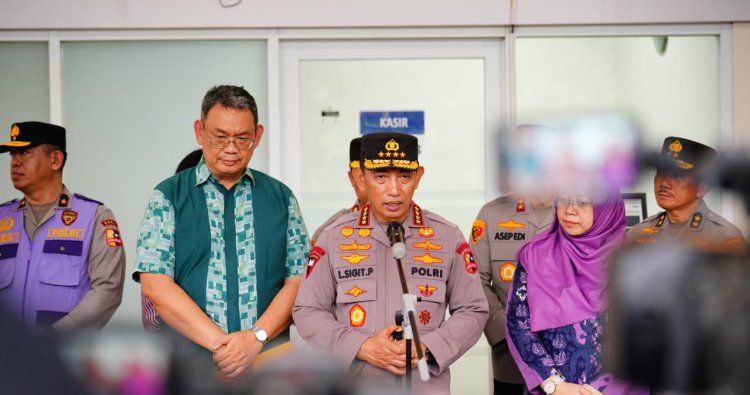 JAKARTA - Kapolri Jenderal Polisi Listyo Sigit Prabowo mengunjungi para korban ledakan di SMAN 72 Kelapa Gading, Jakarta yang kini dirawat di Rumah Sakit Islam (RSI) Cempaka Putih Jakarta, Sabtu (8/11/2025). Listyo datang didampingi oleh Kapolda Metro Jaya Irjen Pol Asep Edi Suheri dan Kapolres Metro Jakarta Pusat Kombes Polisi Susatyo Purnomo Condro.