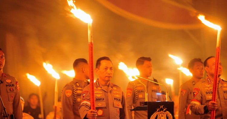 Renungan yang berlangsung dalam suasana gelap dan diterangi ribuan obor itu diikuti oleh Pejabat Utama (PJU) Mabes Polri, para Kapolda, para Karo Ops, serta Kapolres dari seluruh Indonesia, total lebih dari 600 peserta sesuai susunan formasi resmi kegiatan.