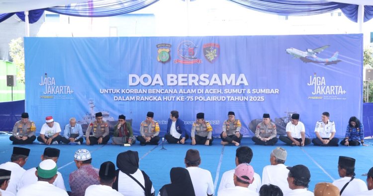 Jakarta – Direktorat Polairud Polda Metro Jaya menggelar doa bersama, sholat gaib, dan istighosah untuk para korban bencana alam di Sumatra. Kegiatan berlangsung di Lahan Parkir Pelelangan Ikan Muara Angke, Senin (1/12/2025), sebagai rangkaian HUT Polairud ke-75 bertema “Polairud Presisi Menuju Indonesia Maju.” Acara ini diikuti sekitar 350 masyarakat pesisir dan kelompok nelayan.