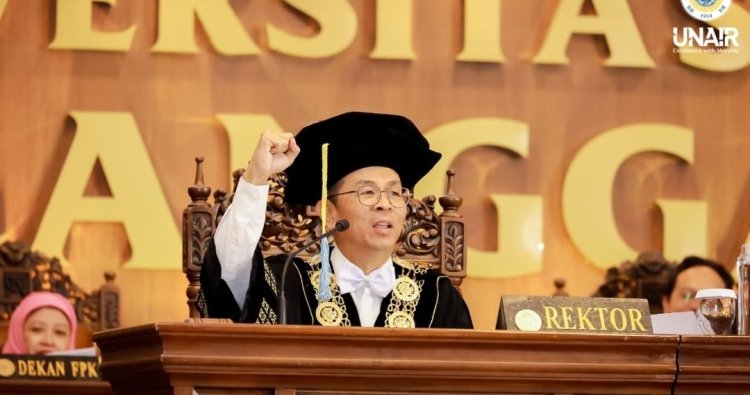 Rektor UNAIR, Prof Dr Muhammad Madyan SE MSi MFin, dalam sambutannya menyampaikan rasa bangga dan ucapan selamat yang tulus kepada seluruh wisudawan. Beliau menekankan sakralnya momen wisuda sebagai puncak dari perjalanan panjang yang penuh dedikasi dalam menuntut ilmu.