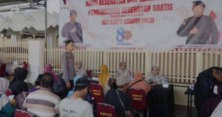 Brimob Polda Metro memberikan pelayanan kesehatan gratis sebagai wujud kepedulian sekaligus mempererat silaturahmi dengan masyarakat.