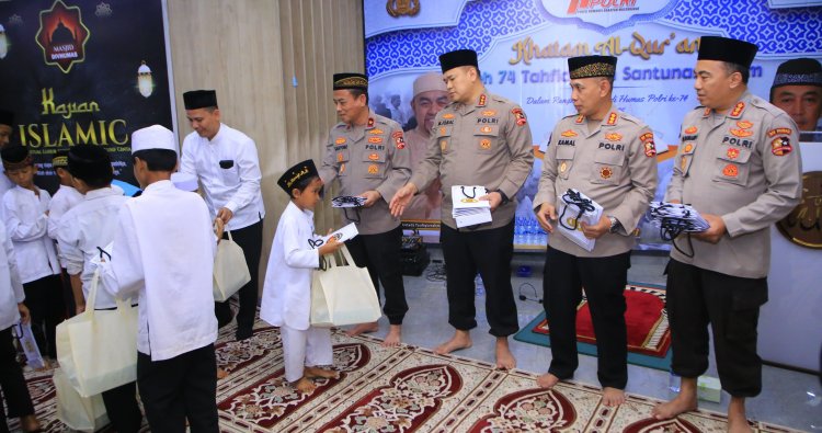 Jakarta. Divisi Humas Polri memberikan tali kasih kepada sejumlah anak yatim dalam rangka Hari Jadi ke-74. Kegiatan ini diselenggarakan usai khataman Al-Qur’an yang melibatkan 74 orang Tahfiz Quran dari sejumlah pesantren beserta personel anggota Divhumas Polri.